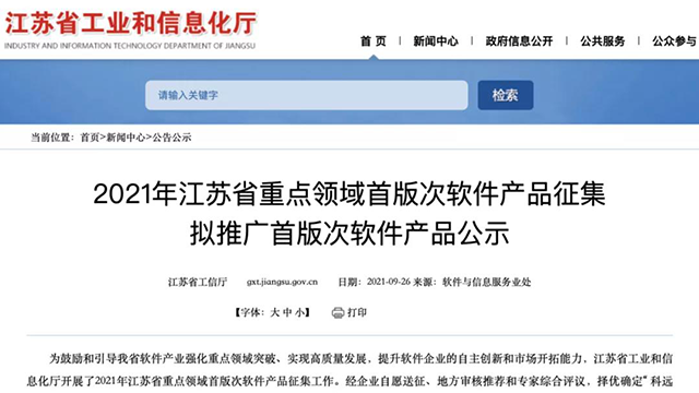 近日,江苏省工业和信息化厅发布了“2021年江苏省重点领域首版次软件产品征集拟推广首版次软件产品名单”,“G22恒峰政务数据中台系统V1.0”成功入选。此次入选,标志“G22恒峰政务数据中台”产品具有良好市场推广应用前景以及技术领先优势,兼具创新及应用价值。